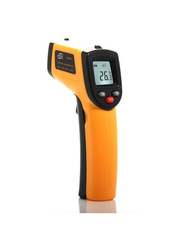 Infrared Thermometer รุ่น GM320 แบรนด์ Benetech มีย่านการวัดระหว่าง -50°C to 380°C (-58 °F to 716°F) มีความแม่นยำในการวัดที่ ±1.5 °C เพิ่มความแม่นยำในการวัดด้วย Laser Pointer ทำให้แสดงตำแหน่งที่วัดได้อย่างแม่นยำ หน้าจอ LCD พร้อมกับ Back light ทำให้สามารถอ่านค่าได้แม้ในที่แสงสว่างน้อย