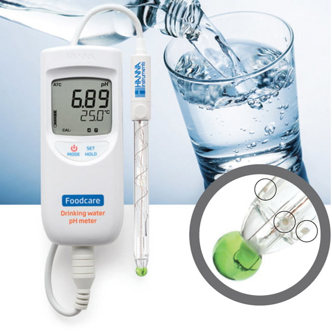 ค่า pH ของน้ำดื่มเป็นค่าที่สำคัญ ถ้าค่า pH ต่ำเกินไปน้ำดื่มจะมีฤทธิ์กัดกร่อนกับระบบน้ำและท่อน้ำในบ้าน ความเป็นกรด – ด่างของน้ำยังมีอิทธิพลต่อสมบัติอื่นๆ เช่นกลิ่น รส และประสิทธิภาพในการฆ่าเชื้อ ในประเทศสหรัฐอเมริกาค่าความเป็นกรด – ด่างของน้ำดื่มจะถูกกำหนดวิธีการวัดตามวิธี EPA 150.1 และ Standard Methods 4500-H
